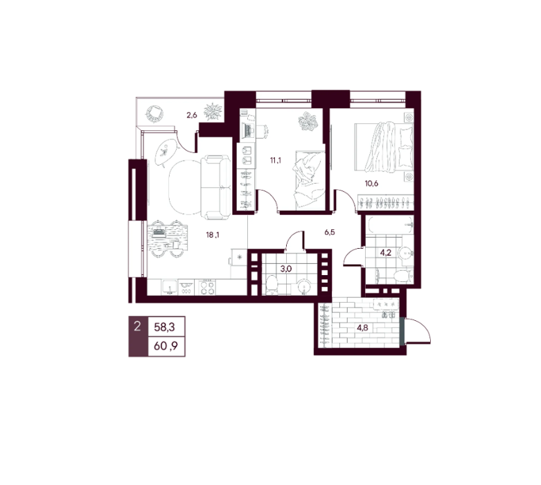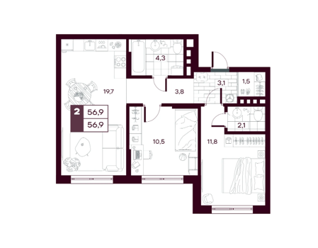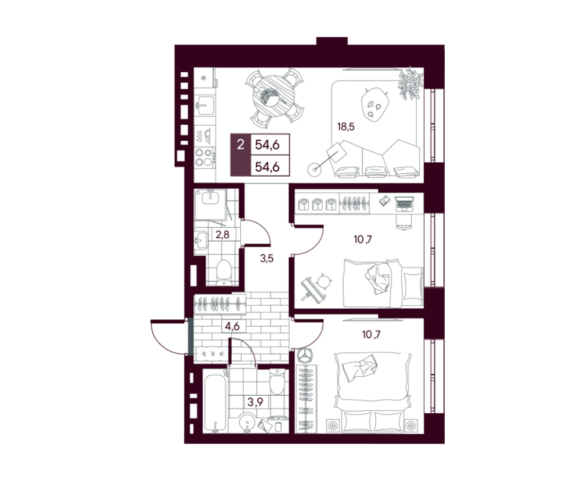 Площадь от 54.6 м2