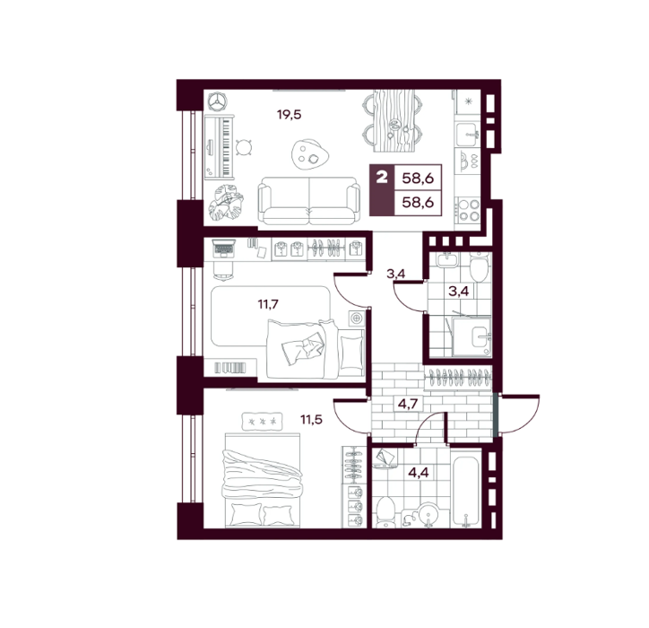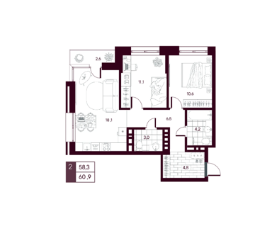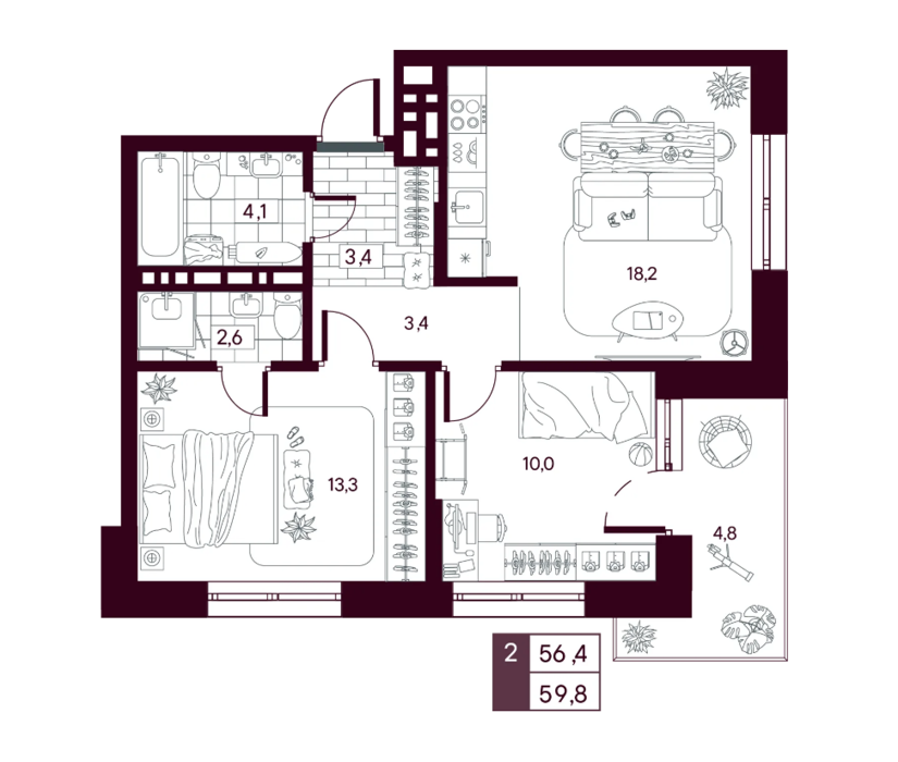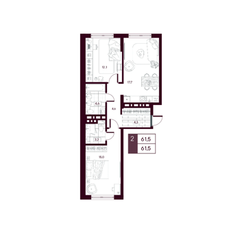 2 комнатные