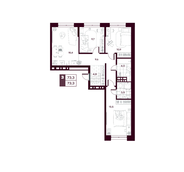 Площадь от 73.3 м2
