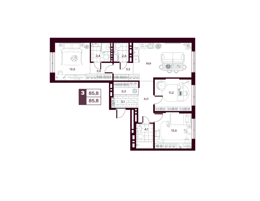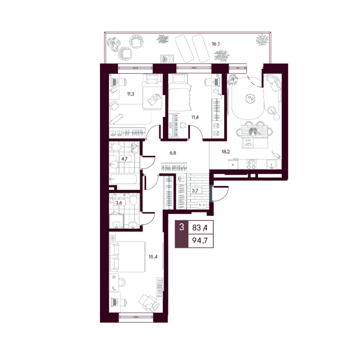 3 комнатные