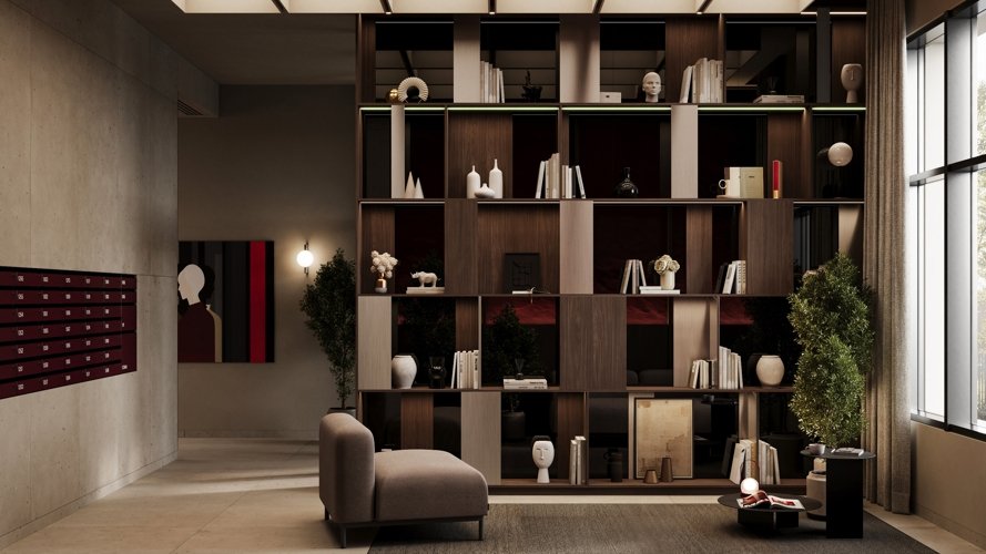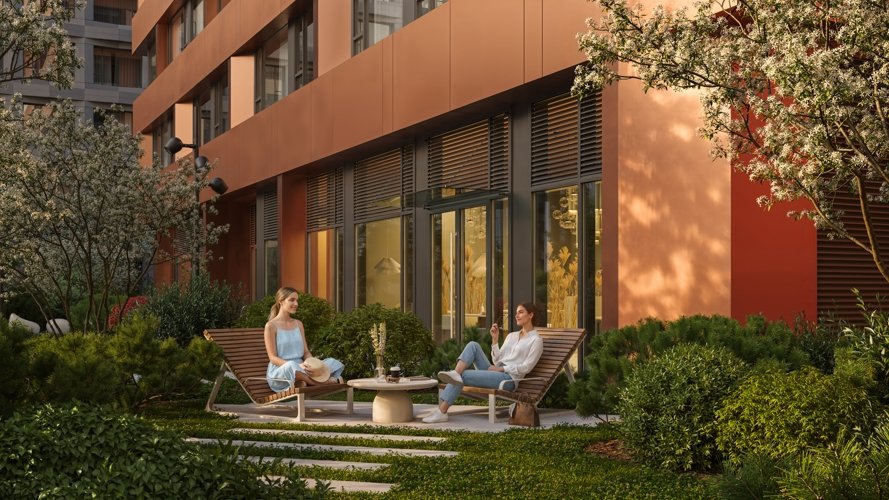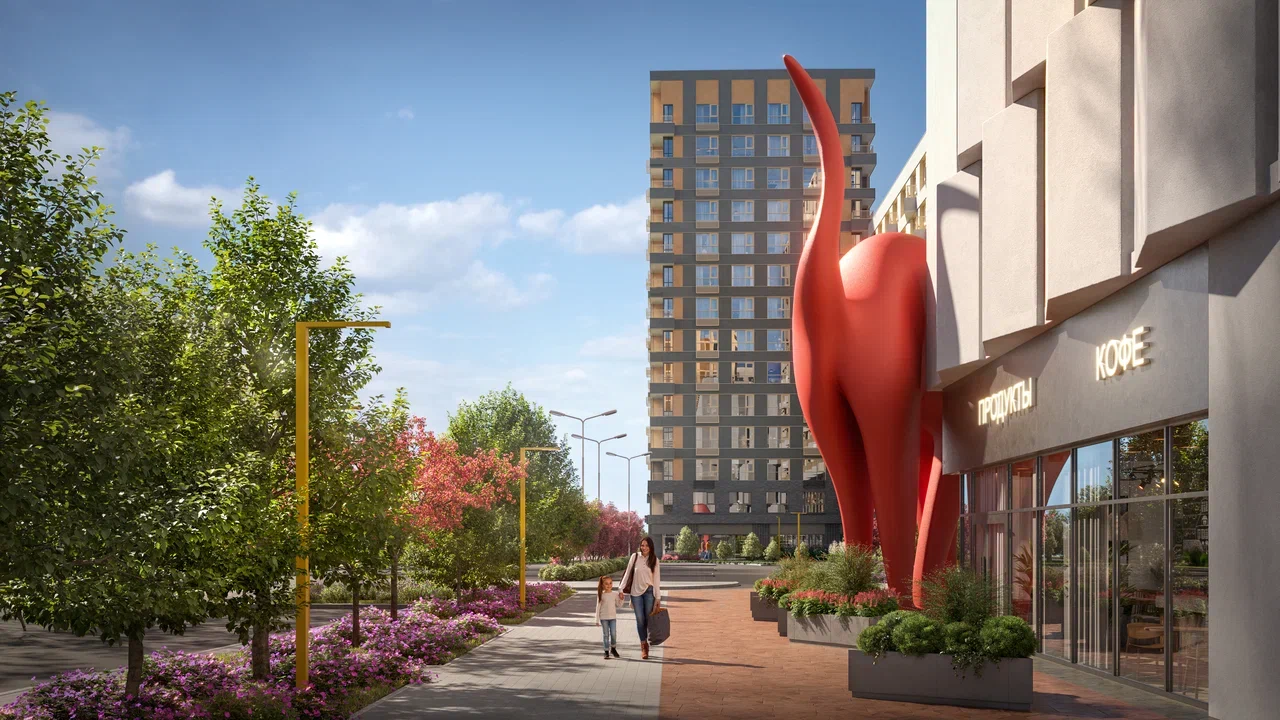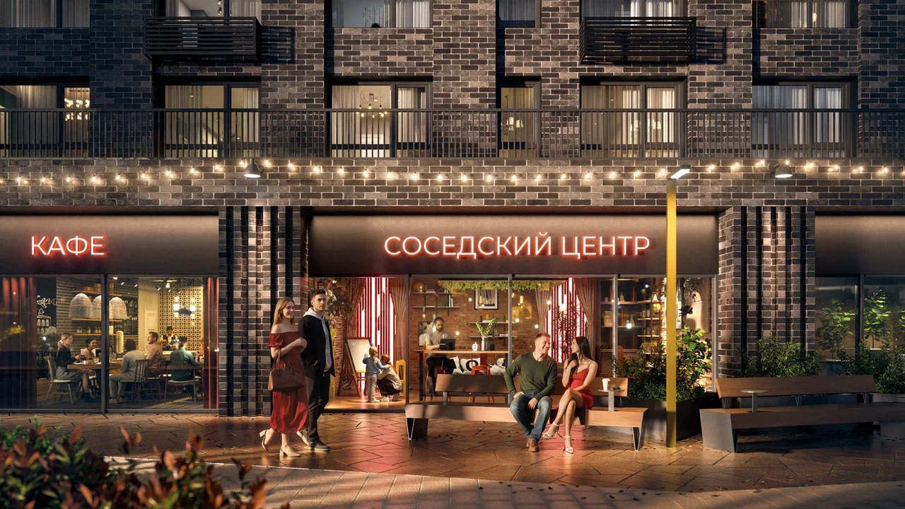 Дом объединяет функции для жизни и общения: детская комната, соседский центр и кафе с авторской кухней и мероприятиями. Сервисная инфраструктура включает консьерж-сопровождение, постаматы и доставку блюд.
