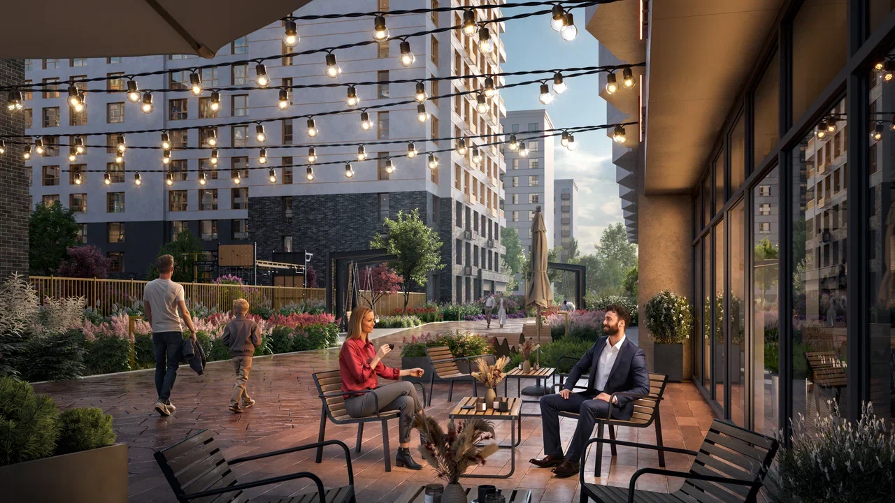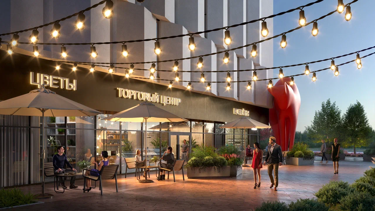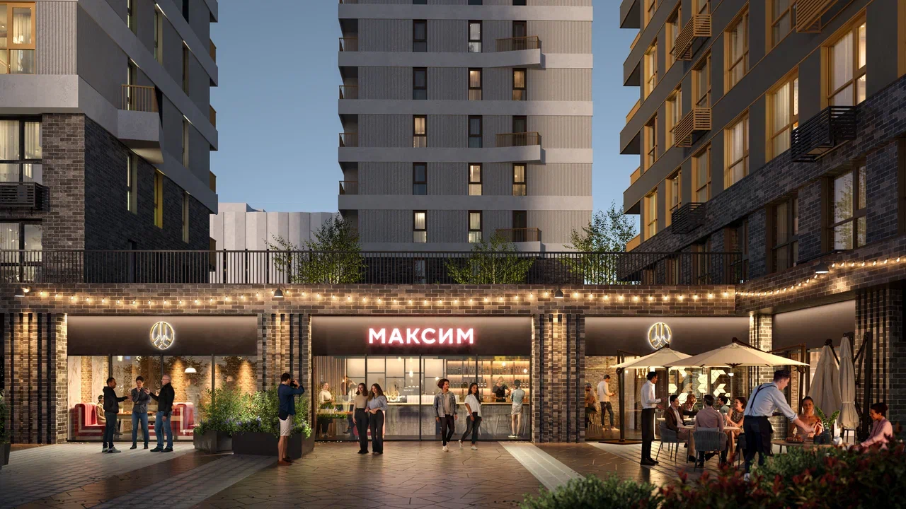 В проекте запланирован ресторанный хаб — пространство для встреч, отдыха и городской жизни. Он формирует современную гастрономическую среду рядом с домом, объединяя комфорт и повседневные сценарии жизни.