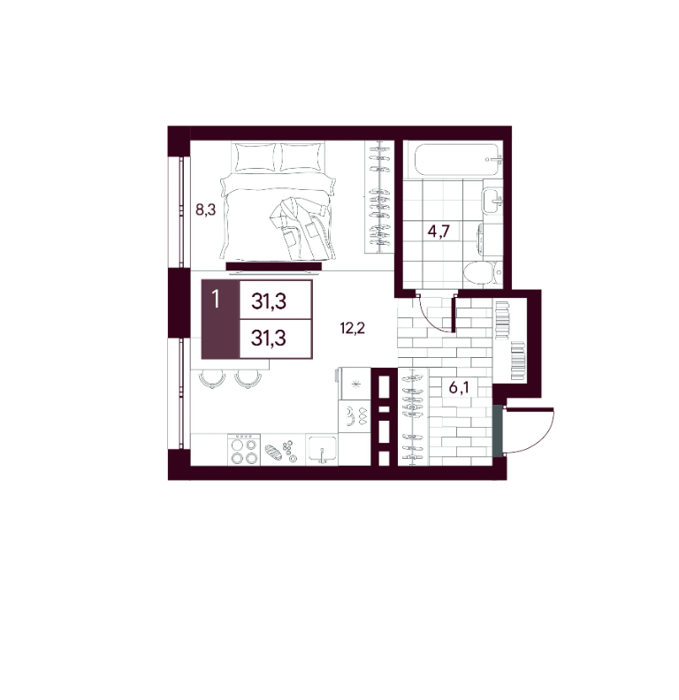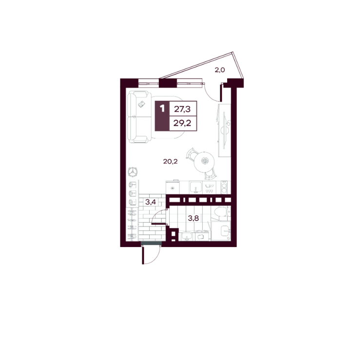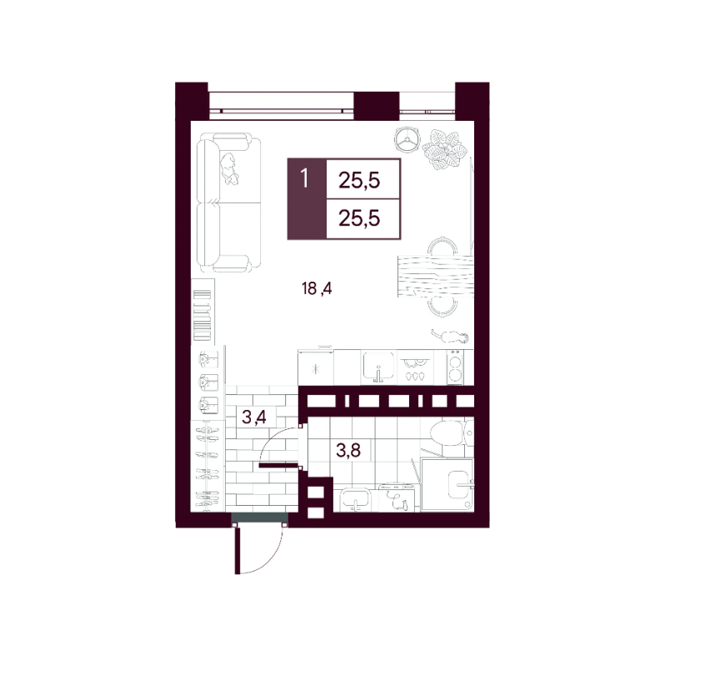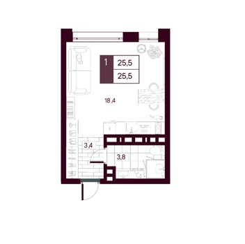 Площадь от 25.5 м2