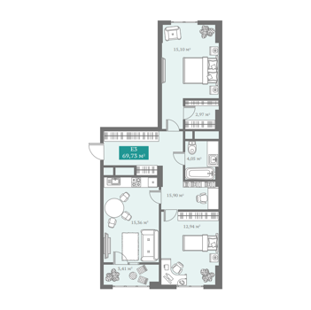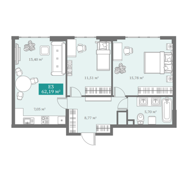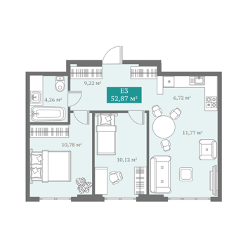 Площадь от 52.87 м2