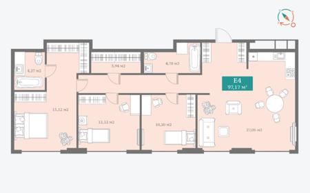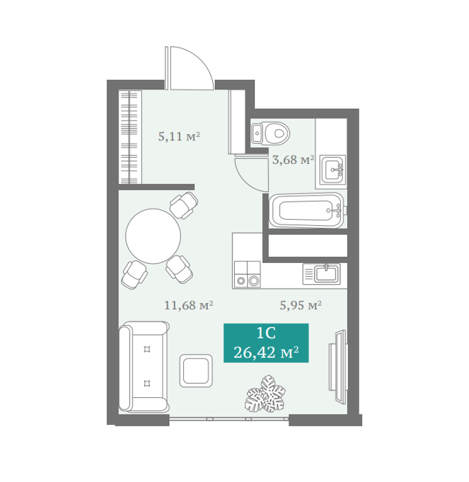 Площадь от 26.42 м2