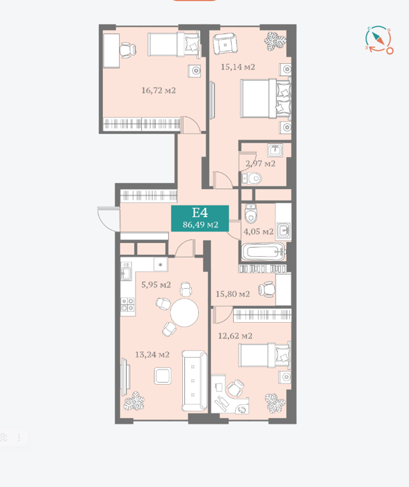 Площадь от 86.49 м2