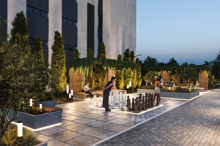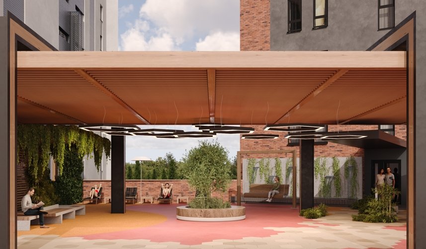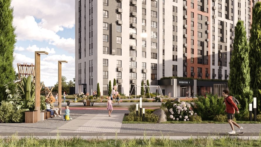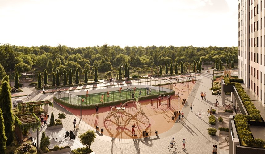 Во внутреннем дворе создаётся приватная среда для отдыха: зелёные прогулочные маршруты, тихие уголки и оборудованные зоны барбекю.