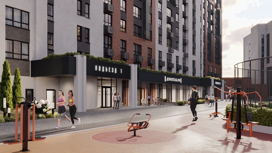 Жилье в «ДомОтель.РФ» — это квартира бизнес-класса, которую может себе позволить каждый. Выйдя из квартиры, и всего лишь спустившись на лифте в лобби можно сразу попасть в магазин, свой спортзал, аптеку, салон красоты, детскую игровую, и мягкую зону лобби и все это не одеваясь — в тапочках.