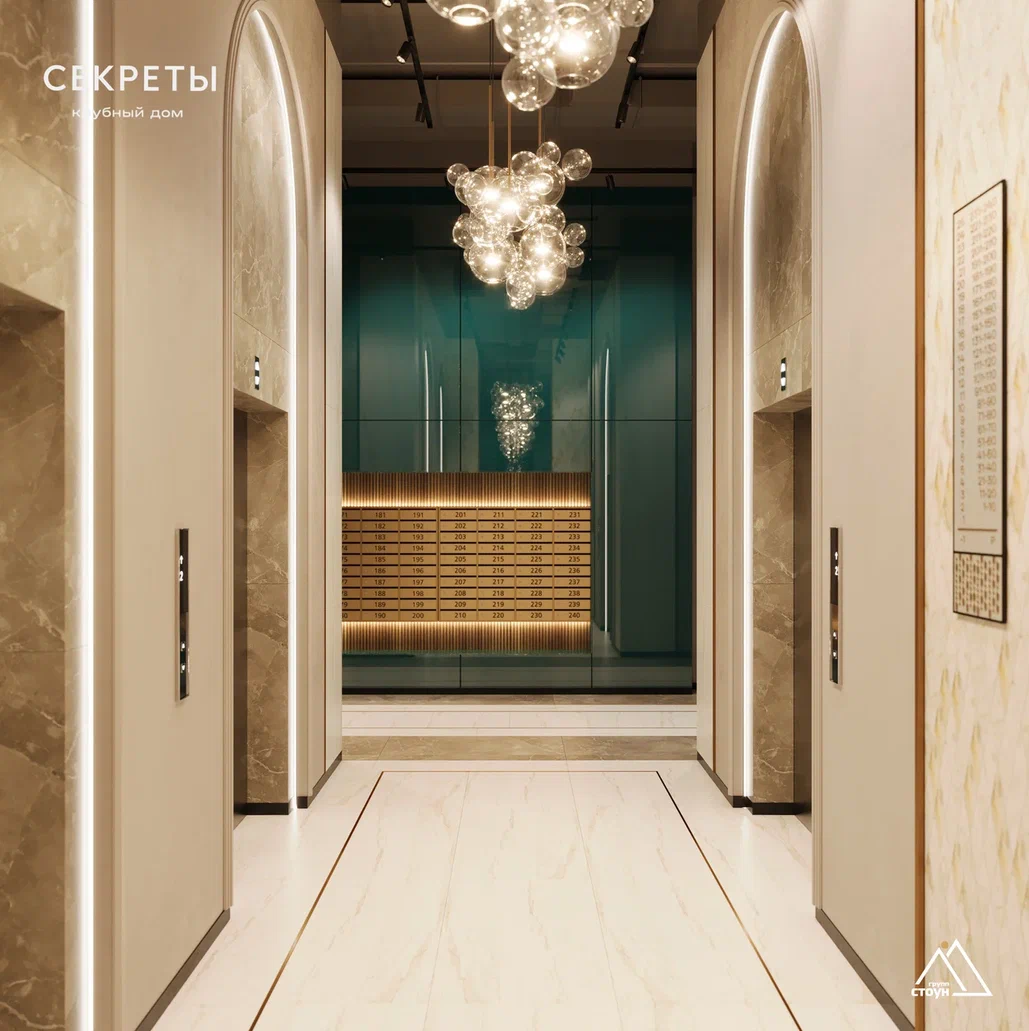 Парадное лобби дома встречает жителей и гостей стильной стойкой ресепшн с консьерж-администратором, обеспечивающим высокий уровень сервиса и безопасности.