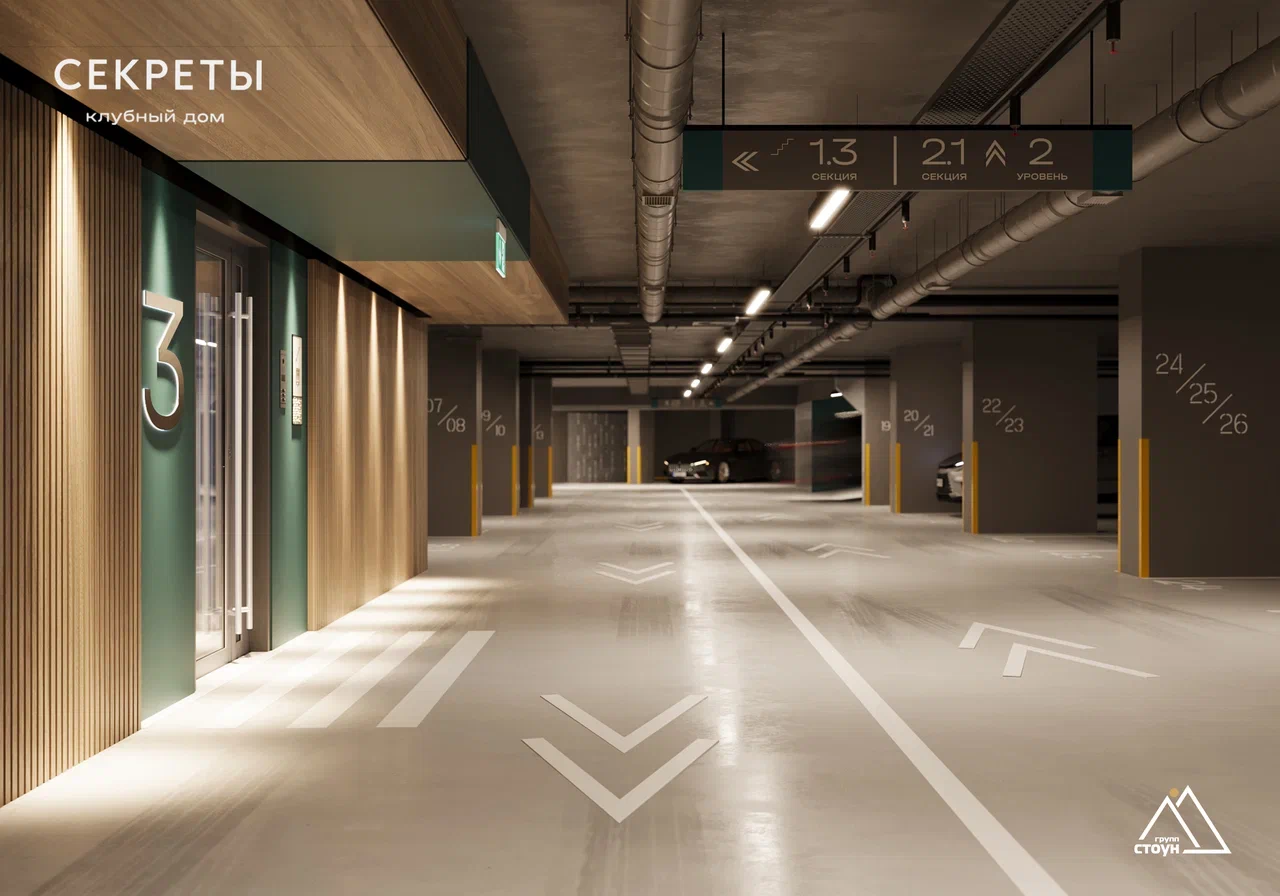 В клубном доме предусмотрена современная система парковки для комфорта жителей.
