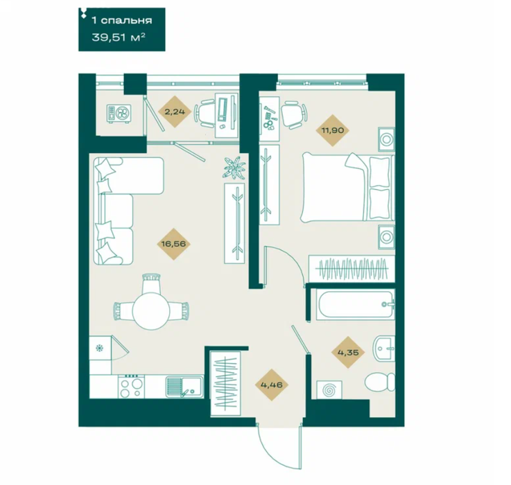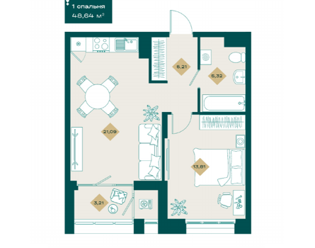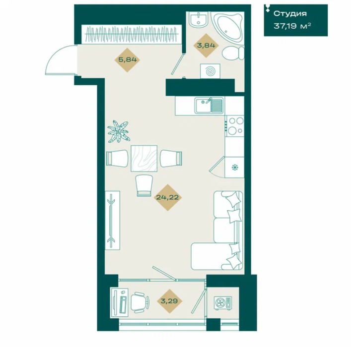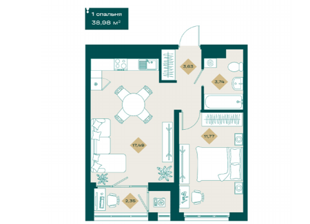 Площадь от 38.1 м2
