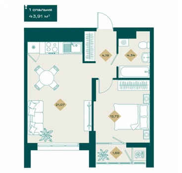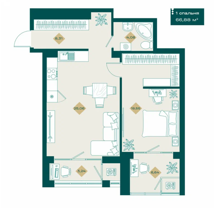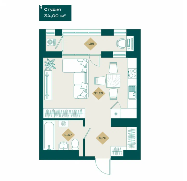 Площадь от 31.5 м2
