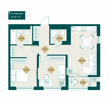 Площадь от 61.61 м2