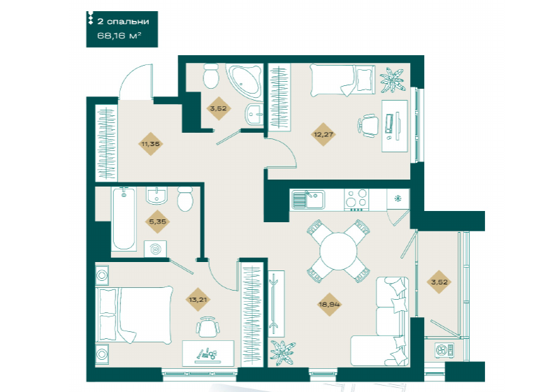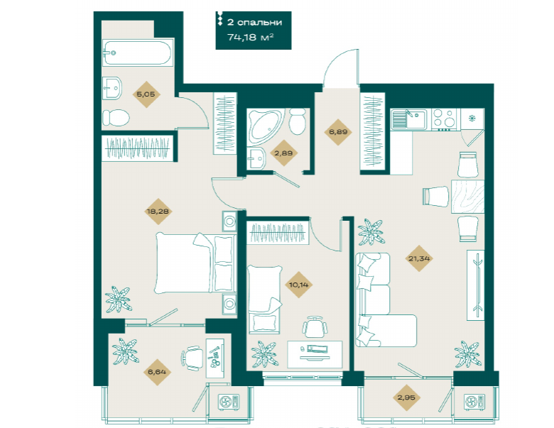 2 комнатные